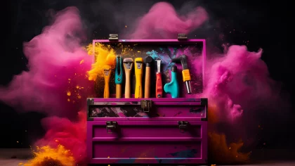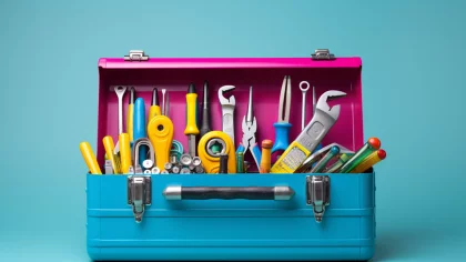 Werkzeugkiste mit diversem Werkzeug gefüllt