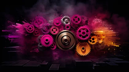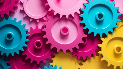 Mehrere bunte Zahnräder greifen perfekt ineinander – Symbol für starke Partnerschaften, reibungslose Zusammenarbeit und gemeinsames digitales Wachstum.